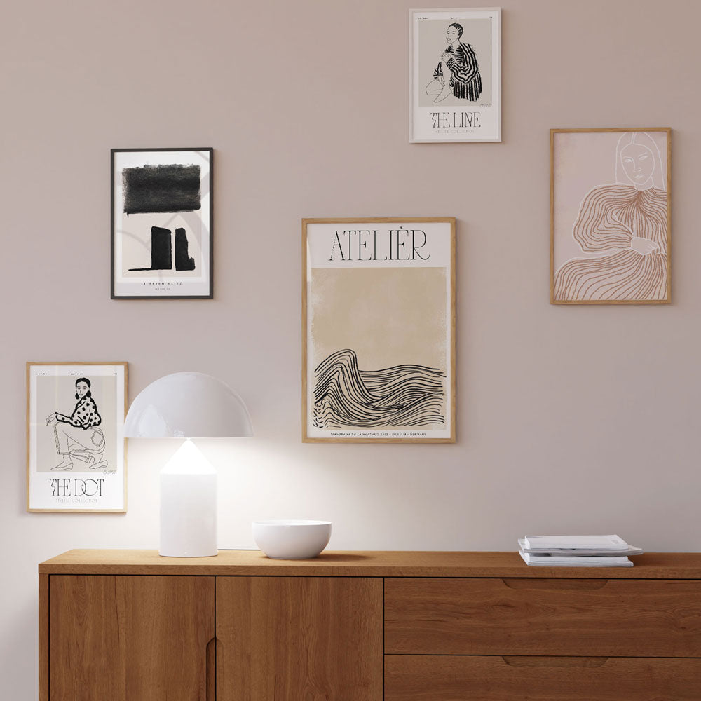 Our eclectic assortment of modern interior prints serves up a sleek blend: decorative typography, abstract beauties, design trends, fashion-forward graphics, and minimalist drawings. Welcome to a world where your surroundings elevate your best work. Your chic space upgrade is just a click away.