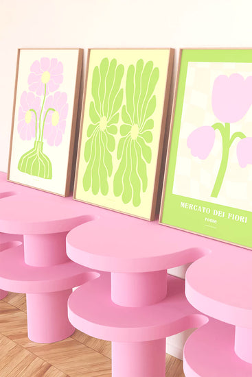 Unveil the coolest vibes for your space with our 'Retro Flower Market' collection. Funky leaves and petals meet modern Y2K trends in a soft retro palette. Elevate your interior style and bring home the good vibes!