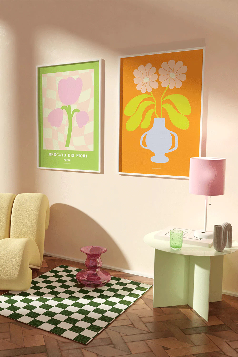Unveil the coolest vibes for your space with our 'Retro Flower Market' collection. Funky leaves and petals meet modern Y2K trends in a soft retro palette. Elevate your interior style and bring home the good vibes!