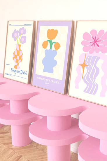 Unveil the coolest vibes for your space with our 'Retro Flower Market' collection. Funky leaves and petals meet modern Y2K trends in a soft retro palette. Elevate your interior style and bring home the good vibes!